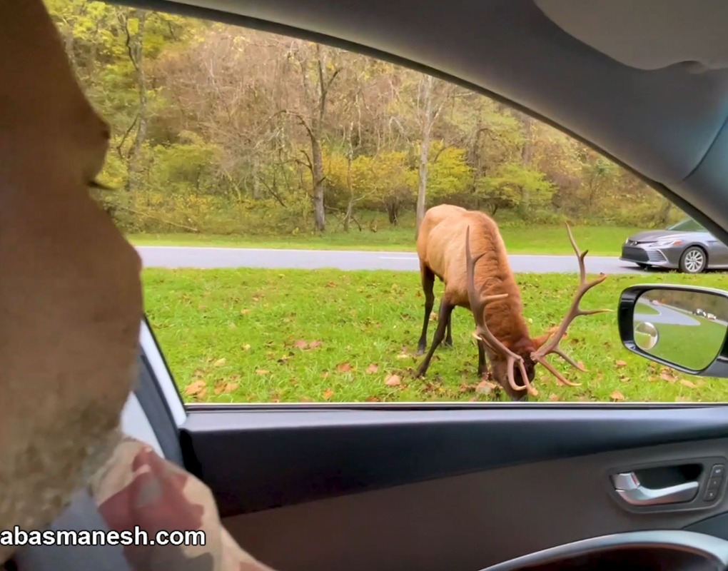 الان جشن هالووینه ، خدایا اون کدو تنبلا رو ببین چه تم زیبایی چیده بودن جلوی رستوران. این گوزن زیبا رو ببین. چه شکوه و عظمتی داره. چه شاخهای زیبایی و چقدر آرام و آسوده در حال صرف صبحانش بود و در ادامه رسیدیم به یک گله گوزن! خدای من باورم نمیشه این همه زیبایی در یکجا جمع شده. این گله گوزن ازاد و رها بین این همه مردم بدون هیچ ترسی خیلی برام جالب بود.