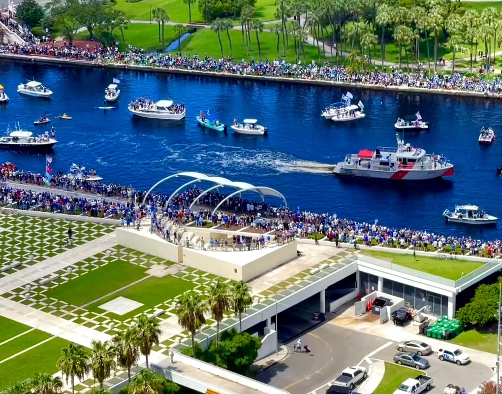 تحسین می کنم تیم هاکی تمپا رو که اینقدر قدرتمند ظاهر شده و تو دوتا فصل قهرمان شده و این خوب کار کردنشون باعث شده این جمعیت جمع بشن و میلیونها دلار ثروت برای خودشون، تیمشون، شهرشون و کل کشورشون ساختن، و باعث شدن اینهمه آدم شاد باشن و بواسطه این شاد بودن کیفیت زندگیشون بهتر بشه.